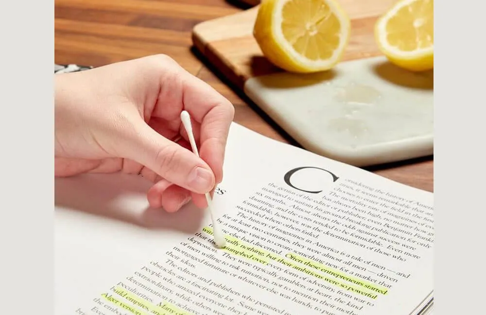 Use this easy tip to keep your study materials organized. Lemon juice is an excellent highlighter mark remover that leaves your books looking brand new. Bid farewell to inadvertent highlighting errors!