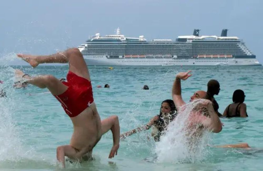 A man’s belly flop ruined the majestic view, demonstrating that tranquility is never safe. Sharing often involves unanticipated dives, even on cruises with gorgeous beaches.