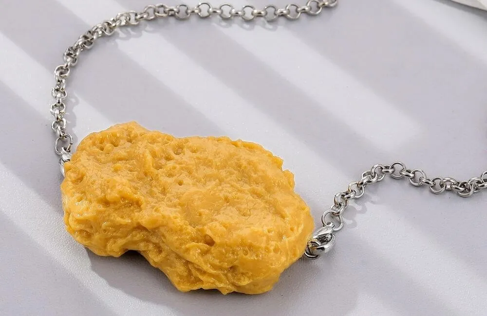 This necklace is likely to draw attention because to its distinctive style. This item is ideal for someone who like oddball accessories or is an avid lover of fried chicken. Don’t pass up the opportunity to inject some humor into your wardrobe.