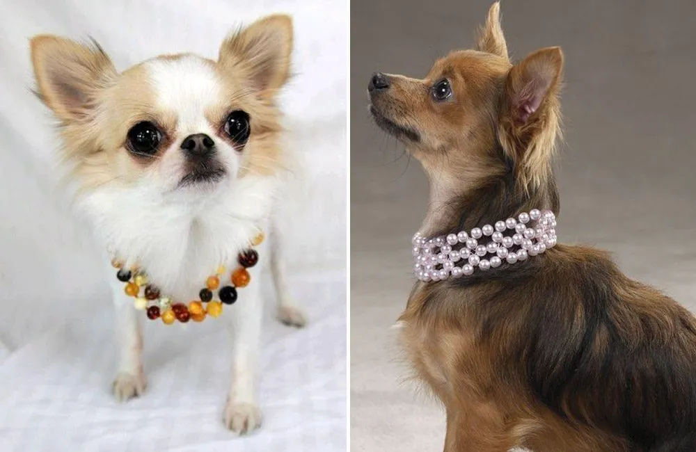 Who says your dog can’t show off his or her style? A popular trend that echoes the custom of carrying pint-sized dogs in designer bags is doggie bling. Accessorize your animal companion with eye-catching necklaces that can be found on websites such as Etsy and Amazon. Vets advise you to take immediate action if your dog feels uncomfortable or scratches at the jewelry.